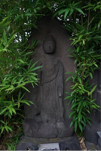 東京都大田区新蒲田2丁目の金剛院(訪問日:2023年11月11日)環八通り沿いにある寺院です。日が暮れる寸前のだったので急ぎ足で参拝したのを記憶しています。本堂の左側、墓地の奥に石仏石塔が笹に包まれるようにして置かれています。阿弥陀如来像庚申塔① 刻…
