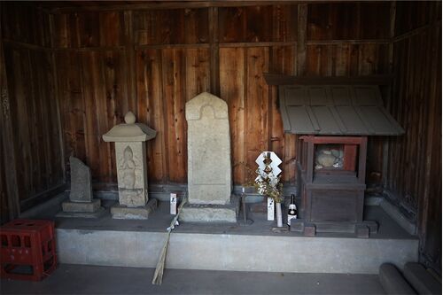 神奈川県海老名市大谷南3丁目の山王社(訪問日:令和6年2月9日) 堂の内と外にそれぞれ石仏石塔があります。 まずは堂の外のものから(と言っても1基のみ)。地神塔(堅牢地神塔)刻銘「慶応三丁卯年八月吉日(1867) / 講中 / 堅牢地神」 角柱型 続いては堂内…