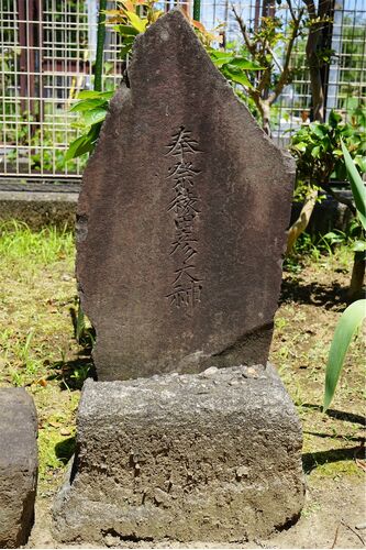 埼玉県八潮市大曽根の西森稲荷(訪問日:令和6年6月8日) 大字西袋との境の近く、十字路に鎮座する小社です。「西森稲荷」扁額決して広くない境内には2基の石塔が並んでいます。向かって右の庚申塔から掲載します。文字庚申塔(猿田彦大神塔) 刻銘「時ニ天…
