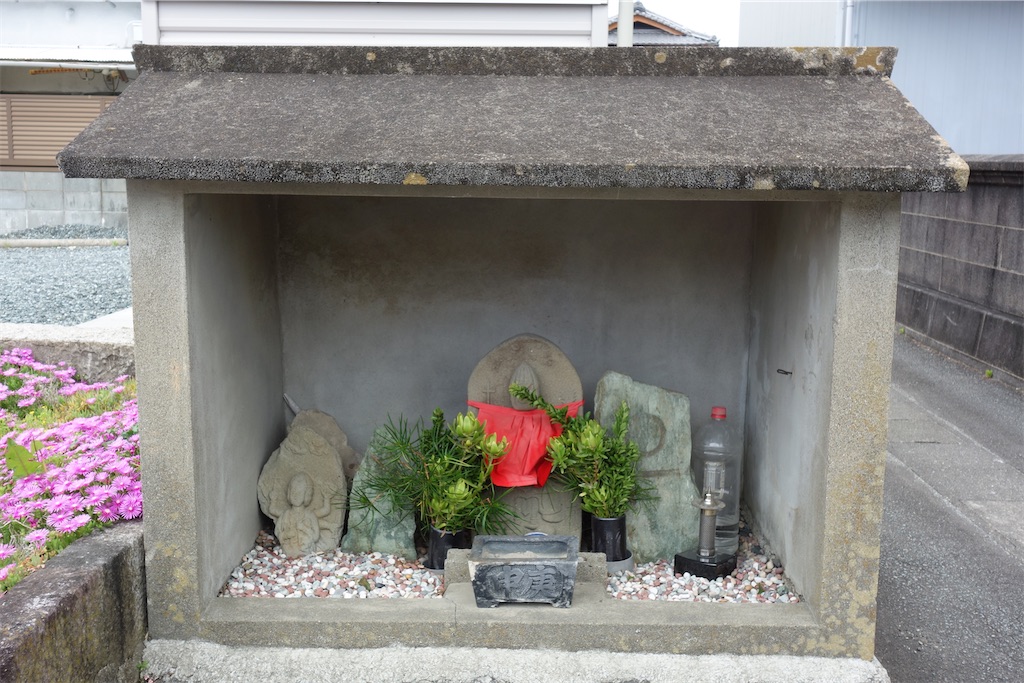 県道748号線を北上し大湊町へ向かう途中、たまたま石仏の祀られた堂宇を見つけました。