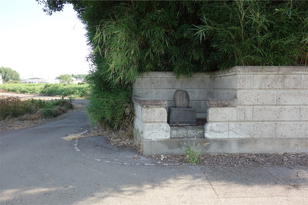 2023-08-21 群馬県の庚申塔 #12(館林市羽附旭町・路傍) 群馬県の庚申塔 群馬県館林市羽附旭町の路傍(訪問日:2023年8月3日)車を走らせていると偶然に見つけました。 個人宅の塀の角、専用の区画が設けられています。 一瞬、山梨県方面に点在する丸石道祖神か?と思ったほど、塔身は丸みを帯びて佇んでいました。 文字庚申塔 刻銘「明和五戊子十月吉日(1768) / 長竹十六人之塔(?) / 庚申供養塔」 所在地