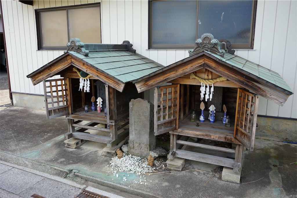 2024-09-29 埼玉県の庚申塔 #56(越谷市増森2丁目・路傍) 埼玉県の庚申塔 水神塔 埼玉県越谷市増森2丁目の路傍(訪問日:2024年6月8日)昭和メタルの建物脇に小祠が2棟建っており、そこに挟まる形で庚申塔が置かれています。文字庚申塔 刻銘「宝暦四甲戌天十月吉日(1754) / 庚申供養塔」 駒型、彫像(日天月天、瑞雲)三猿像 右の祠には水神天。左の祠には三田八幡宮がそれぞれ祀られていました。 所在地