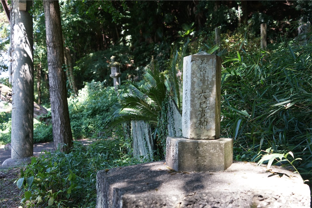2024-10-12 地神塔(美馬市脇町大字猪尻・八幡神社) 地神塔 徳島県美馬市脇町大字猪尻字西上野の八幡神社(訪問日:2024年8月11日)庚申堂の脇に五角形の台石に載った地神塔があります。それぞれの神名の上に神々の神格を表した文言を刻みます。地神塔(五神名地神塔、五角柱地神塔) 刻銘「明治三十年八月吉日(1897) / 當村氏子中萬歳 / 農業祖神天照大神五穀護神大己貴命五穀祖神倉稲魂命土御祖神五穀護神少彦名命」 山状角柱型 八幡神社の所在地