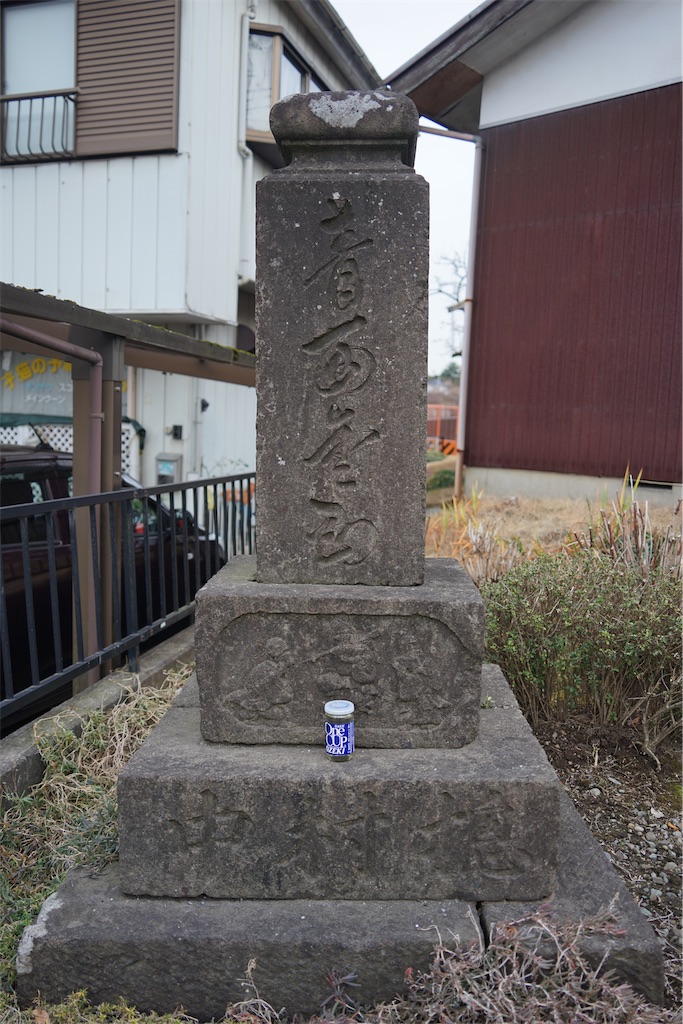 刻銘「維時明治五龍次壬申仲春祭祀日安置之(1872) / 摠村中 / 三寳擁護風雨順時聖仏無霊國家安全 / 藤石菴丞立 / 發願主齋藤藤吉世話人角田彦八良(以下人名略) / 青面金剛」※「仲春春祭祀日」とは当地の養蚕信仰と庚申信仰とのつながりを示すものらしいです(参考:相模原市立博物館 博物館の窓−民俗の窓(平成24年度) (2024年2月13日閲覧))。